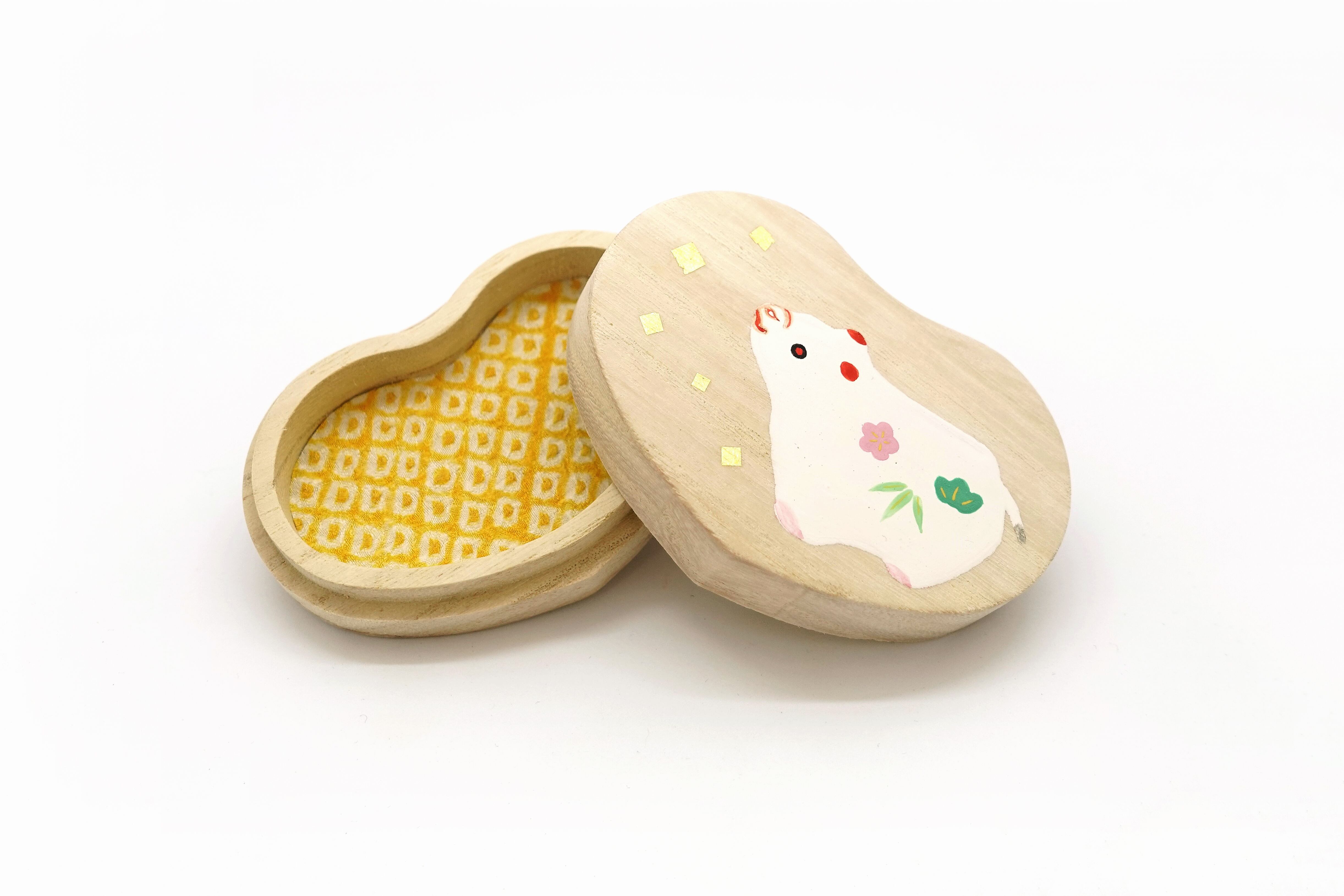 ほっこり優しい、牛の張子を描いた桐箱です。